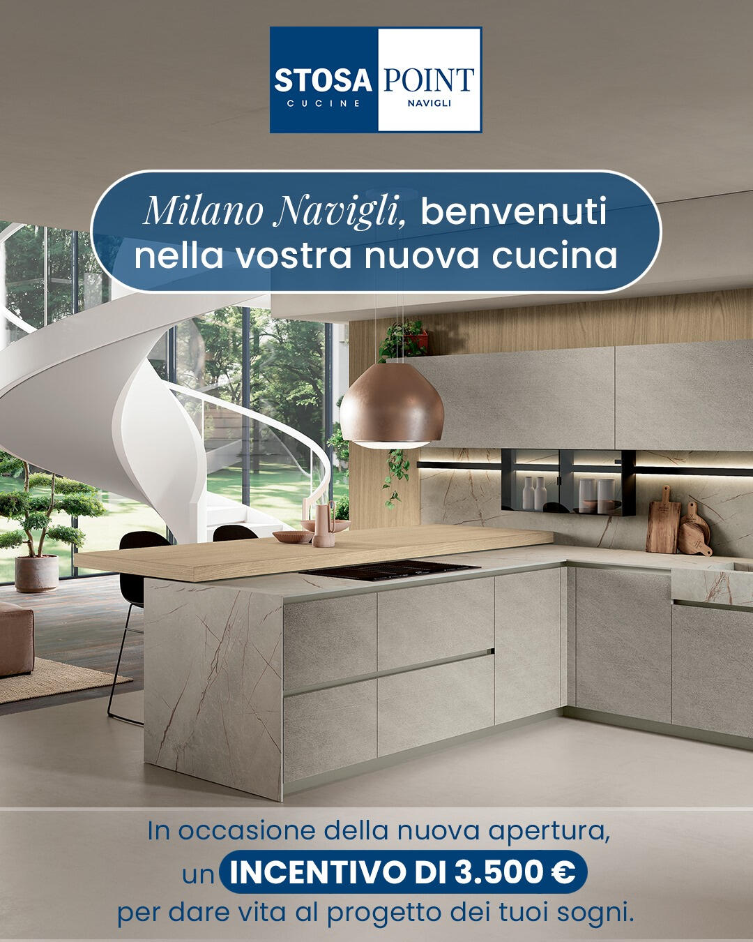 Il design e la qualità Made in Italy di Stosa Cucine sbarcano nel cuore pulsante di Milano. Ti aspettiamo nel nostro nuovo Showroom: lo Stosa Point Milano Navigli, uno spazio espositivo unico dove l'ispirazione incontra il massimno della funzionalità .PRENOTA ORA IL TUO APPUNTAMENTO da Stosa Point Milano Navigli e blocca il tuo incentivo di 3.500€
